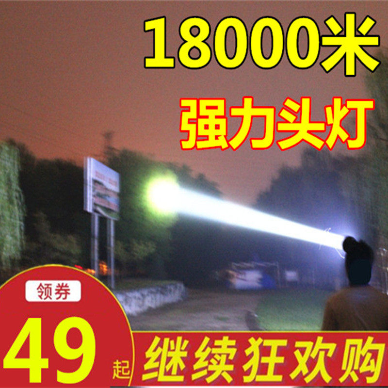 淘强光户外头戴式可充电锂电头灯LED超亮远射800米夜钓迷你防水矿灯