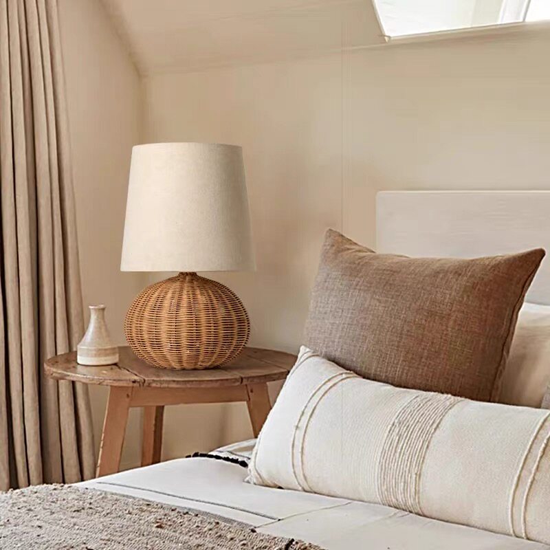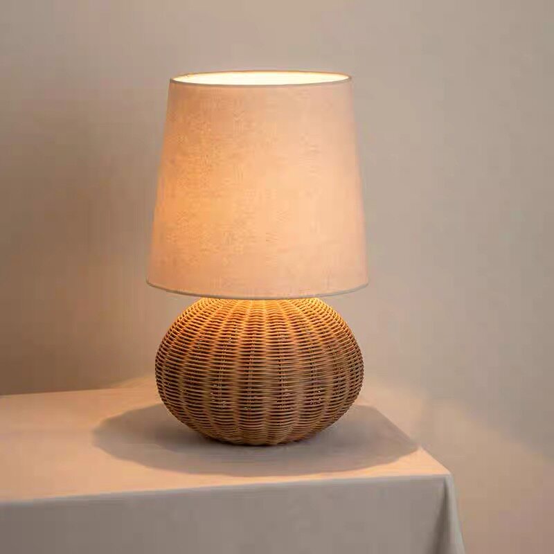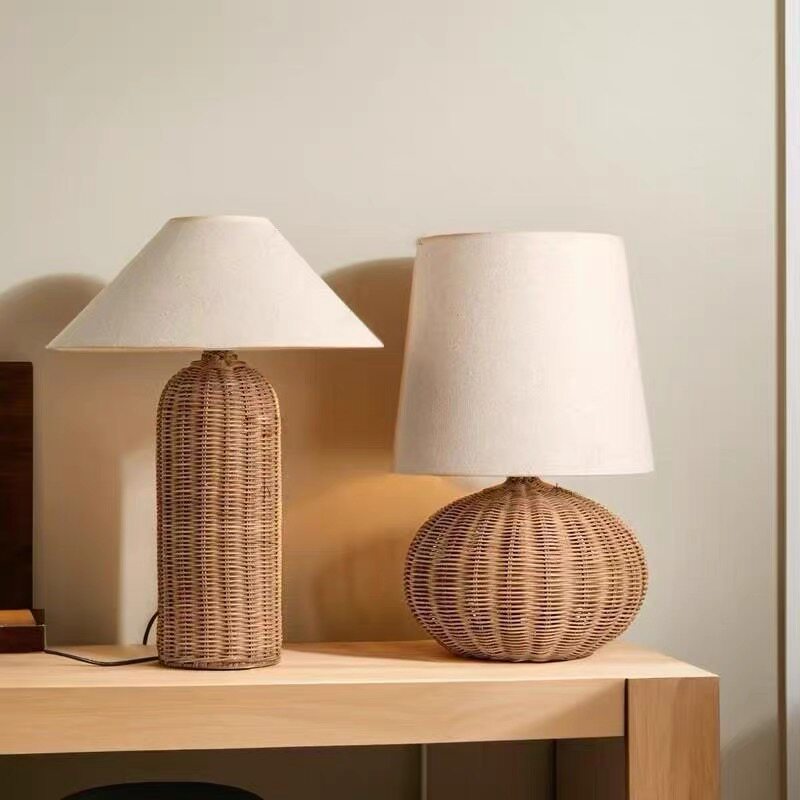 淘宝日式侘寂风藤编台灯民宿客厅卧室床头灯宋代美学复古氛围灯装饰