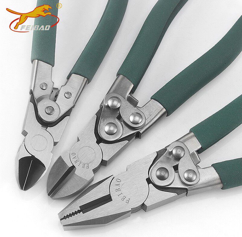 飞豹系列钳具集多功能于一体,包含6寸尖咀钳、斜咀钳、8寸钢丝钳、老虎钳、平口钳及多功能剪线钳等,适用于电子维修、电工操作、家庭DIY及工业作业。尖咀钳精细灵活,适合夹持小零件;斜口钳锋利耐用,轻松剪切导线;8寸钢丝钳握力强劲,可剪断中硬金属丝;老虎钳夹持稳固,广泛用于紧固与折弯;平口钳提供平整夹面,确保工件不变形。整体采用高碳钢锻造,经热处理工艺增强硬度与耐磨性,手柄防滑设计提升操作舒适度。飞豹钳具品质可靠,是专业技工与日常使用者的理想工具之选。