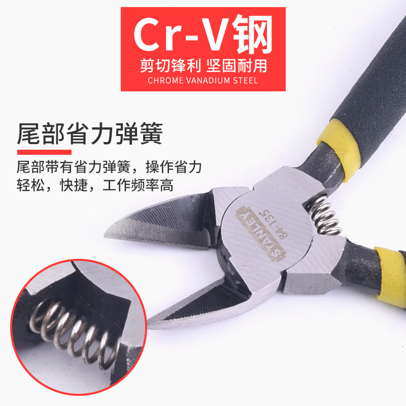 天猫史丹利水口钳薄刃电工专用剪线钳模型剪钳工业级电子斜口钳5寸6寸