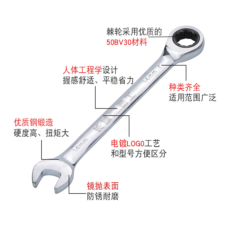 淘宝长城精工棘轮扳手两用梅花双向快速棘轮扳手10/12/14/17/19/22/24