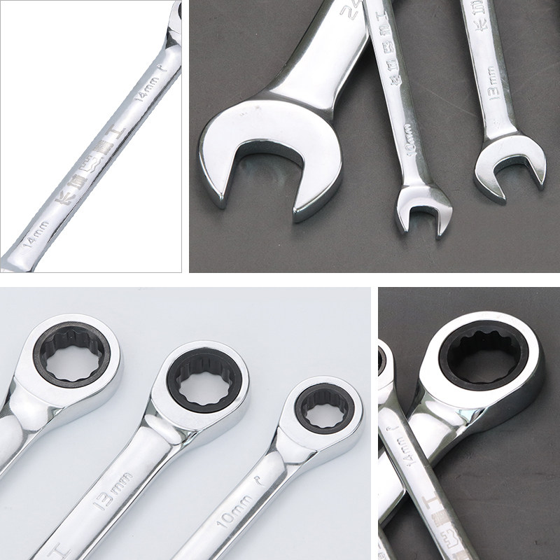 长城精工棘轮扳手是一款集梅花扳手与快速棘轮功能于一体的高效工具,适用于10、12、14、17、19、22、24毫米等多种常用规格。其双向棘轮设计可实现正反向快速切换,无需反复拆卸,大幅提升作业效率,尤其适合狭小空间操作。采用优质铬钒钢锻造,经热处理工艺,具备高强度和耐用性,表面防锈处理延长使用寿命。人性化防滑手柄设计,握感舒适,防滑耐磨。结构紧凑,一物多用,是机械维修、汽车保养、家居装配的理想选择,兼顾专业性与实用性,彰显长城精工精益求精的制造品质。