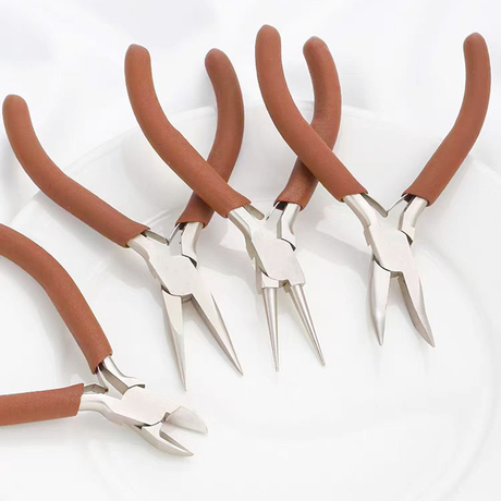 咖啡色diy首饰珠宝绕线尖嘴圆嘴钳多功能串珠手工套装钳子工具