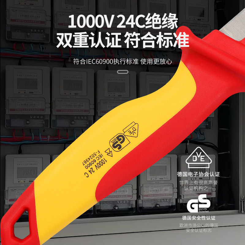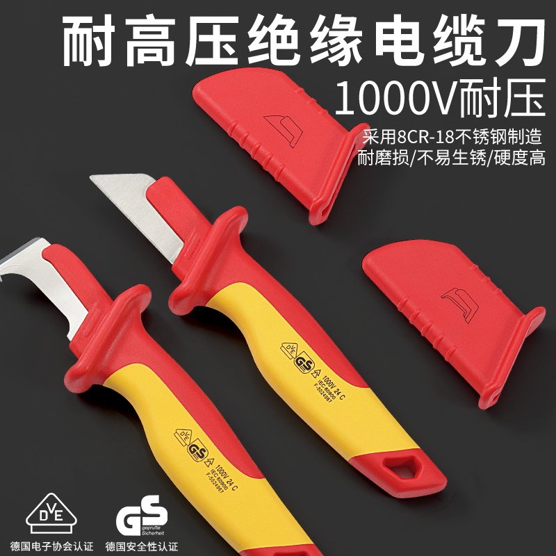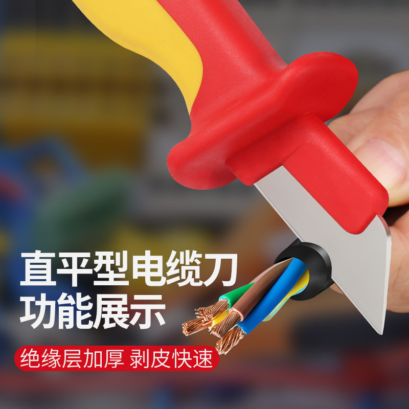 淘宝开拓绝缘电工刀高硬度VDE认证1000V耐高压电工专用电线拔皮剥皮刀