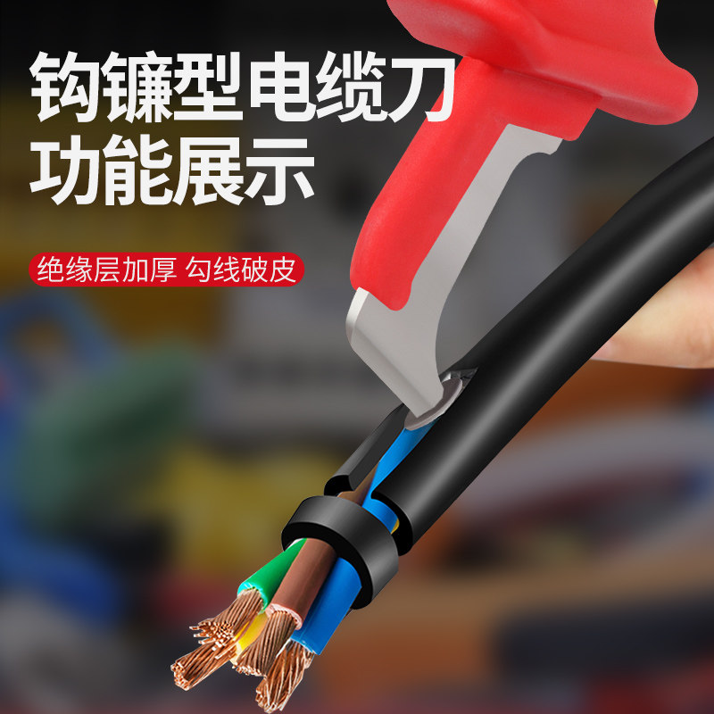 淘美工刀重型京岛电工刀钩刀电缆勾刀毛边纺织用割丝刀片梯形工具