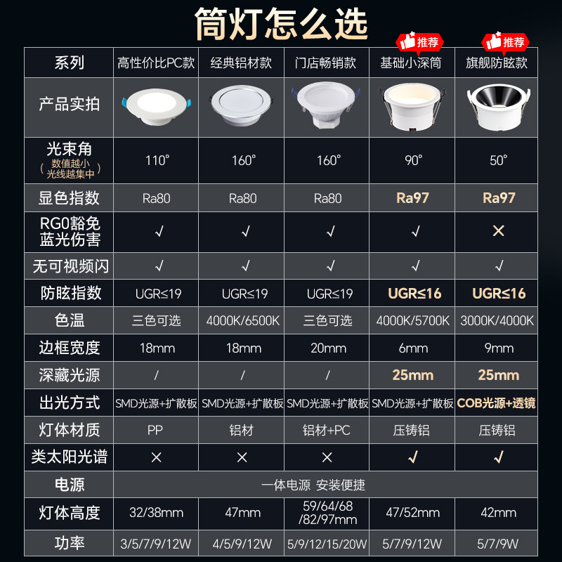 淘超薄led筒灯嵌入式7.5天花灯9w12W孔灯家用客厅店铺商用洞灯桶灯