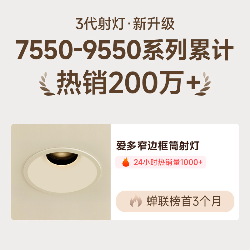 天猫爱多辉3代护眼筒灯嵌入式家用普瑞全光谱极窄边框小山丘射灯9560N