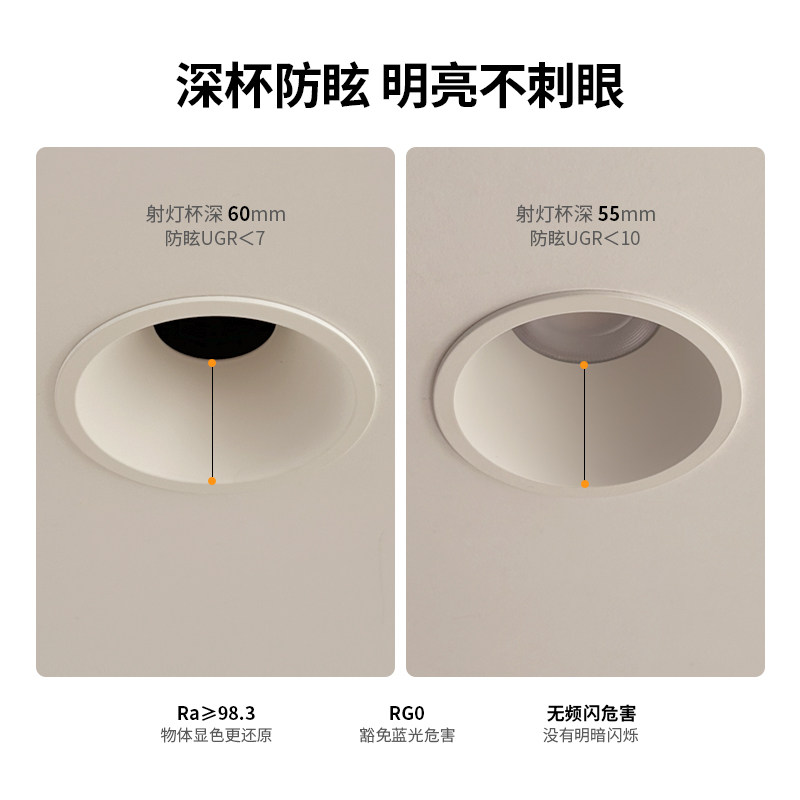 飞时代全光谱护眼射灯嵌入式小山丘无副光斑深杯防眩led智能筒灯