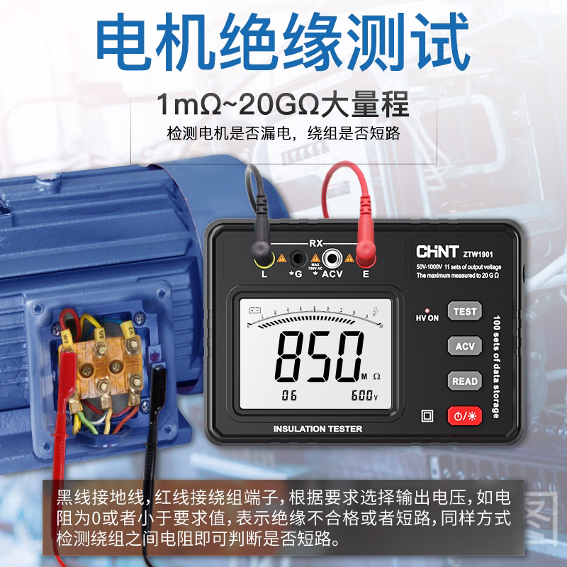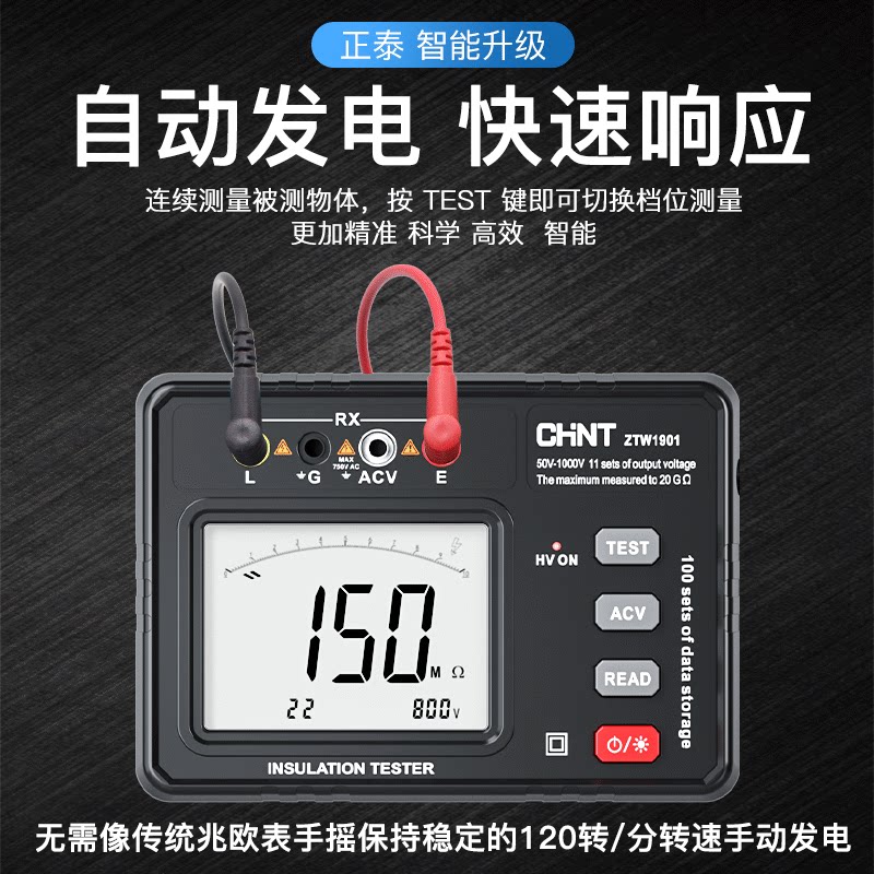 正泰指针式兆欧表500v 1000V绝缘电阻测试仪锂电直充电工用绝缘表