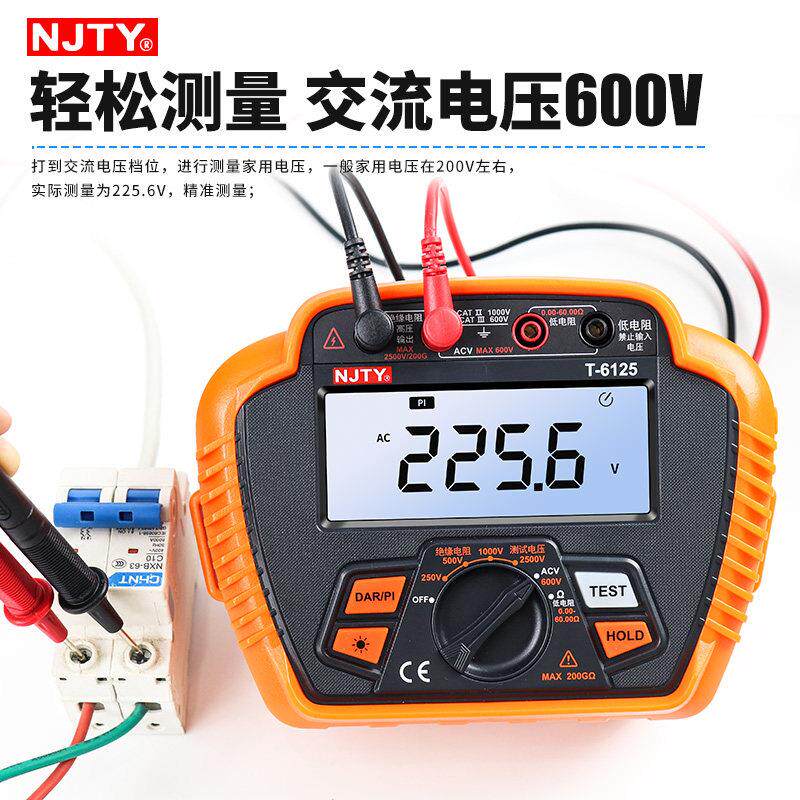 南京天宇T6125高精度绝缘电阻测试仪是一款专业级数字兆欧表,适用于电力设备、通信系统及工业设备的绝缘性能检测。该仪器具备高达200GΩ的测量量程,支持250V测试电压,可精准评估高阻值绝缘状况。采用数字显示技术,读数清晰直观,抗干扰能力强,确保在复杂电磁环境下仍能稳定工作。具备自动放电、短路保护等功能,操作安全便捷。广泛应用于电力系统、铁路、石油化工及建筑电气等领域,是电工进行设备维护、预防性试验的理想工具。T6125兼具高精度、高可靠性与人性化设计,满足现代电气检测的高标准要求。