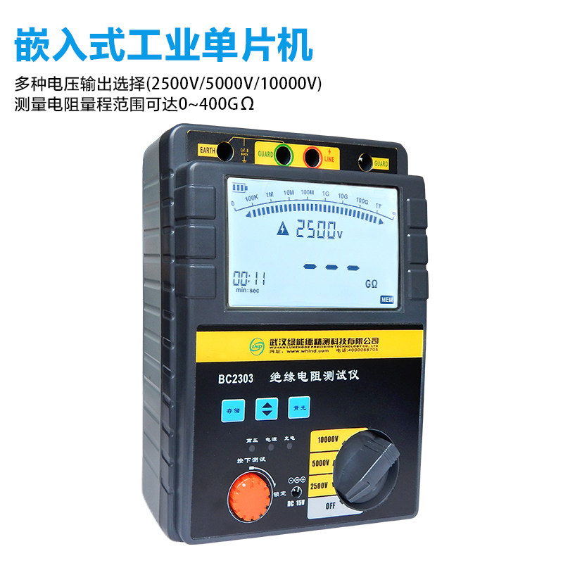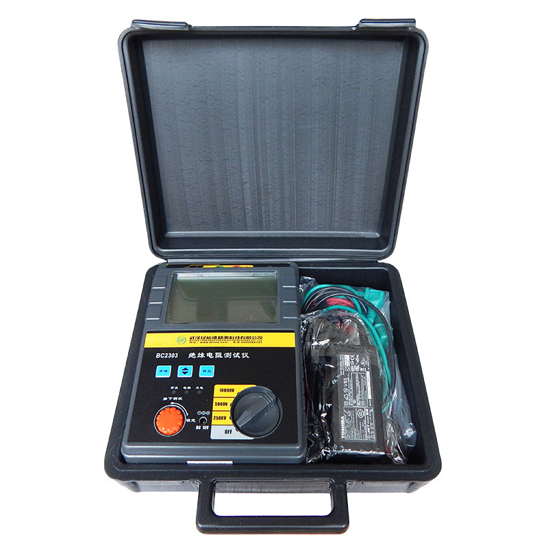BC2303数字兆欧表是一款高性能绝缘电阻测试仪,支持交直流两用,具备10000V(10kV)高压输出能力,适用于电力设备、电缆、电机、变压器等大型电气装置的绝缘性能检测。采用电动高压发生技术,输出稳定、抗干扰强,可自动测量并显示绝缘电阻、吸收比、极化指数等关键参数。配备大屏幕液晶显示,数据清晰易读,具备数据存储与USB导出功能,便于后期分析。整机设计符合国际安全标准,具备过压、过流保护及放电提示,操作安全便捷。广泛应用于电力、通信、轨道交通及工业维护领域,是保障电气系统安全运行的重要检测工具。