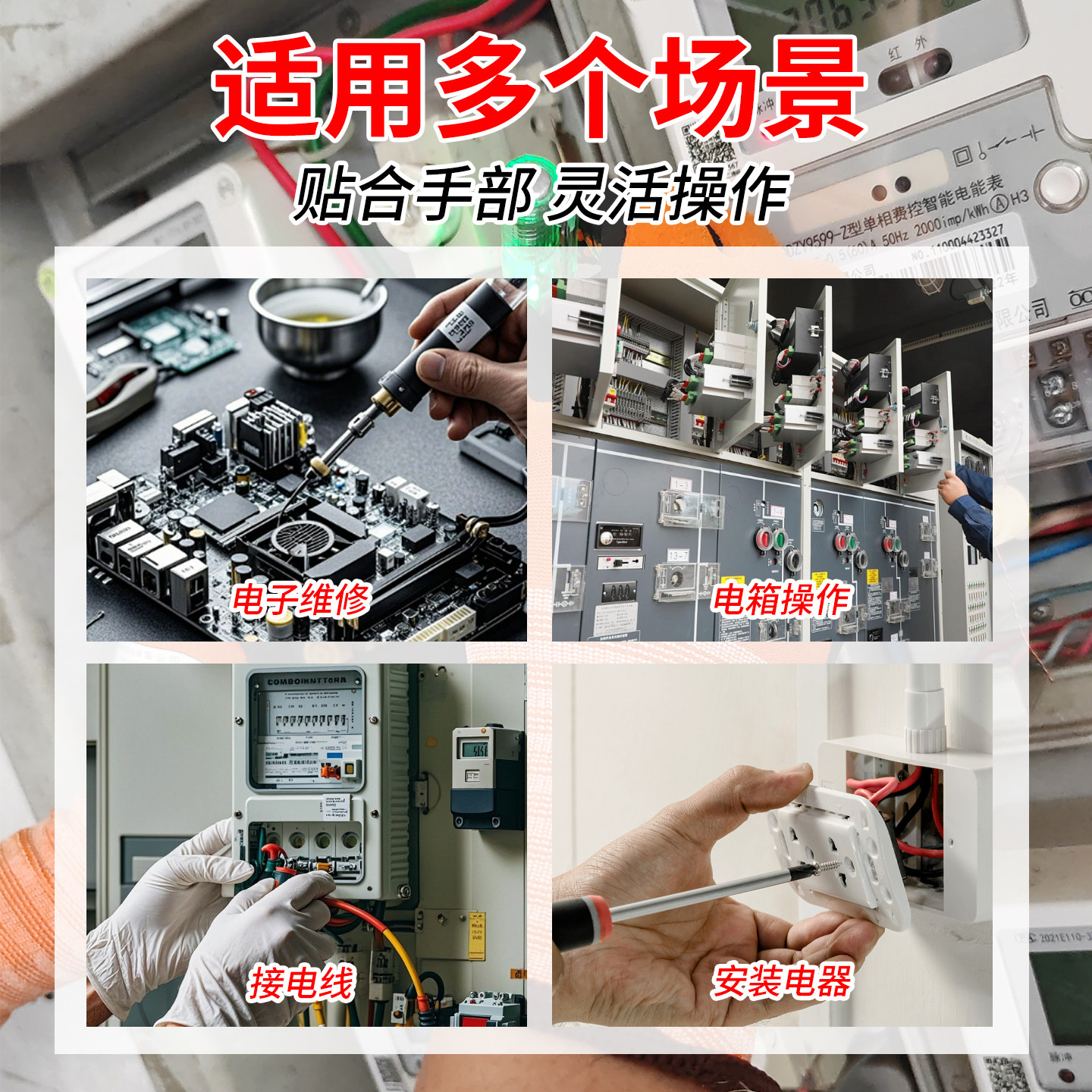 电工绝缘手套380V低压防触电400V合闸专用薄款,专为220V及380V低压电力系统操作设计,符合国家安全标准,具备优异的绝缘性能与防触电保护。采用高品质橡胶材质,超薄轻便,佩戴舒适,灵活度高,适合新能源设备维修、配电柜操作、合闸作业等精细作业场景。表面防滑纹理增强抓握力,确保操作安全。通过400V耐压测试,有效防止意外触电,保障电工人身安全。适用于光伏、风电、充电桩等新能源领域日常维护与应急处理,是专业电工值得信赖的安全防护装备。