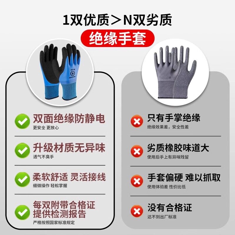 淘绝缘手套电工380v防电低压220v薄款400v专用专业接线超薄带电作业