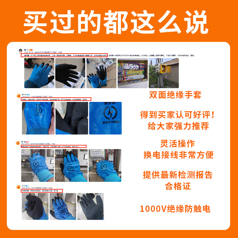 淘电工绝缘手套低压防静电400v防水防切割500v新能源专用1000v薄款