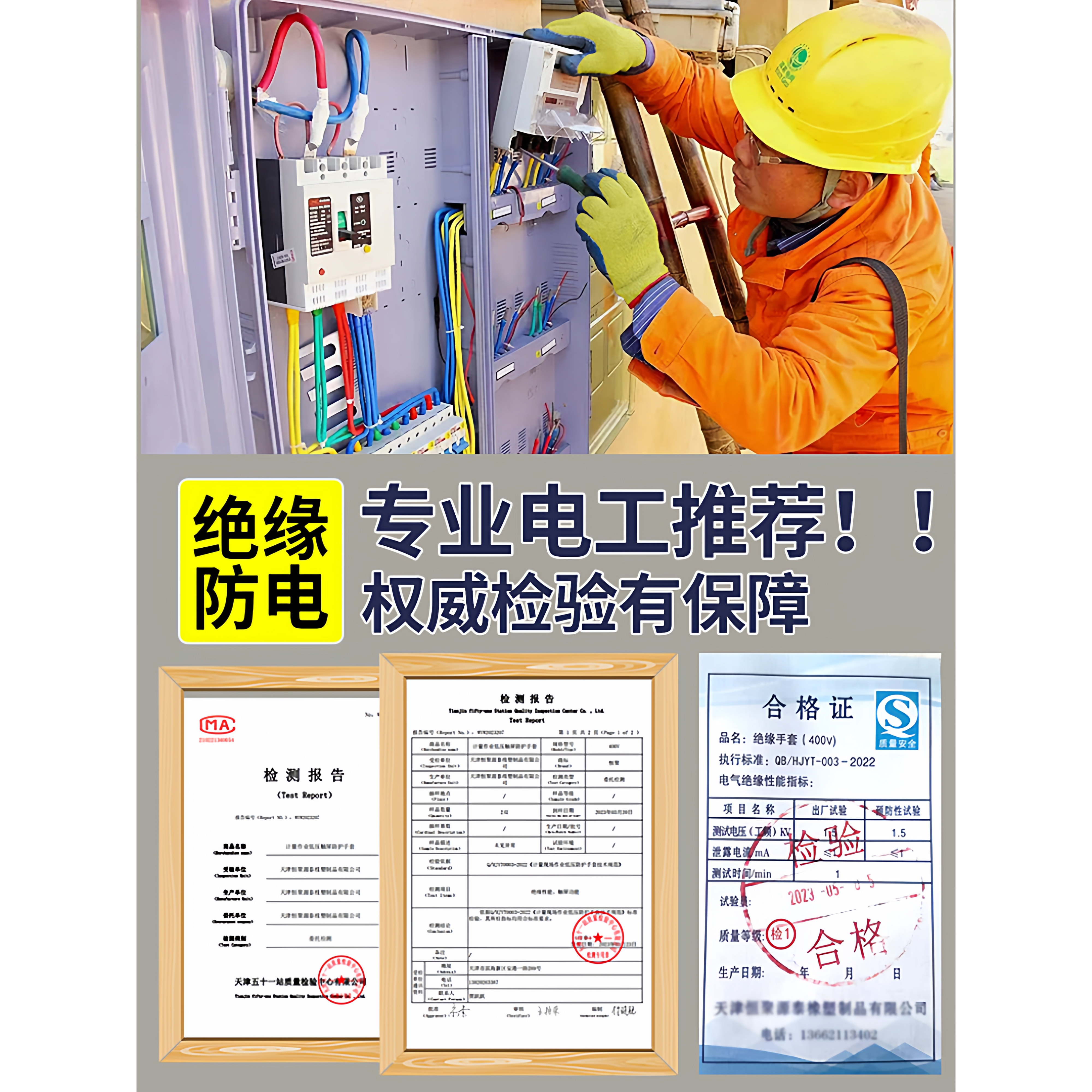 天恒辉绝缘手套400V电工低压乳胶橡胶防触电防滑耐磨电路维修配电室