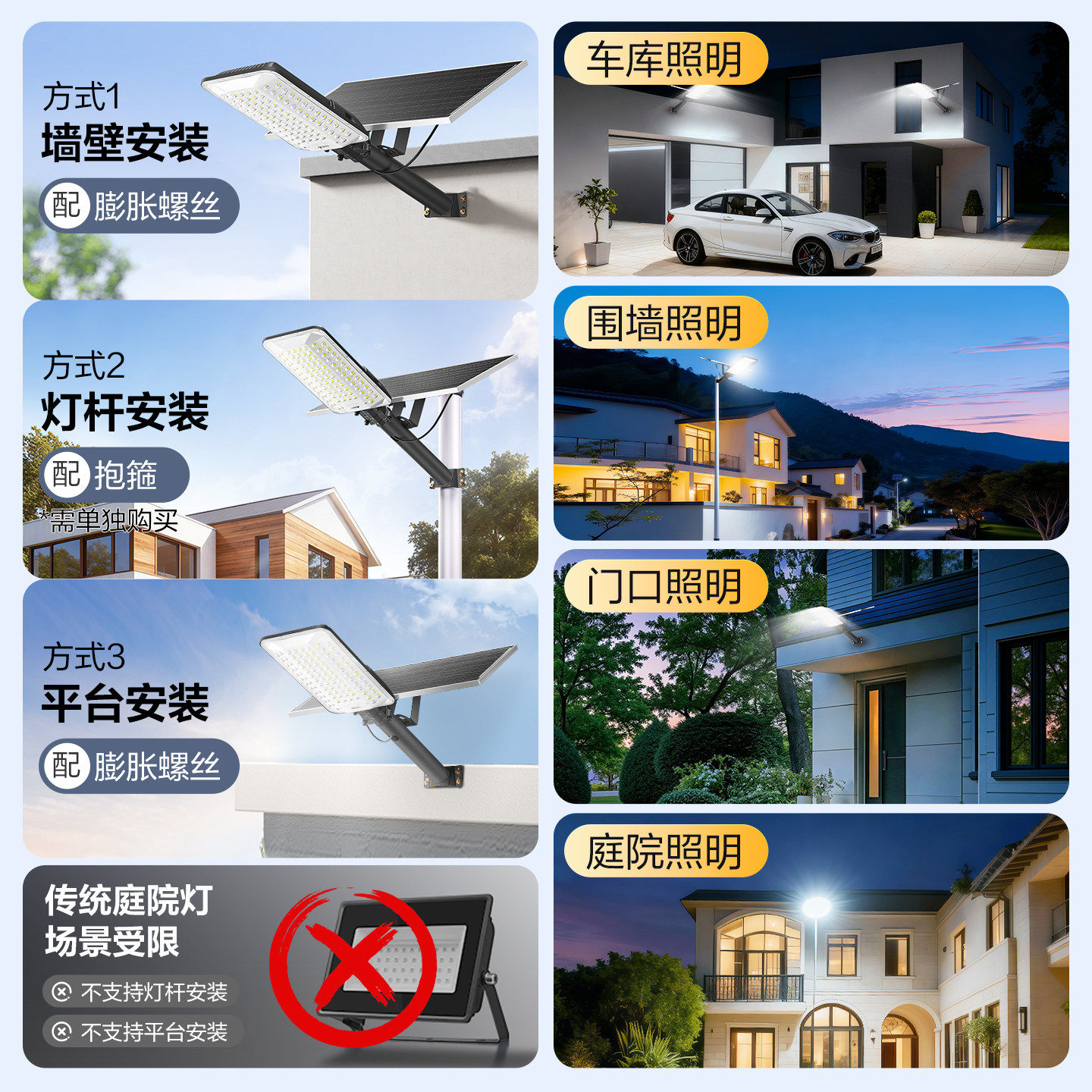太阳能户外庭院灯2026新款家用室外防水超亮大功率LED感应照明灯