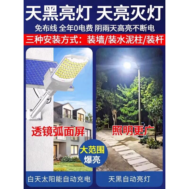 太阳能户外灯家用庭院灯2026新款超亮大功率强光农村感应照明路灯