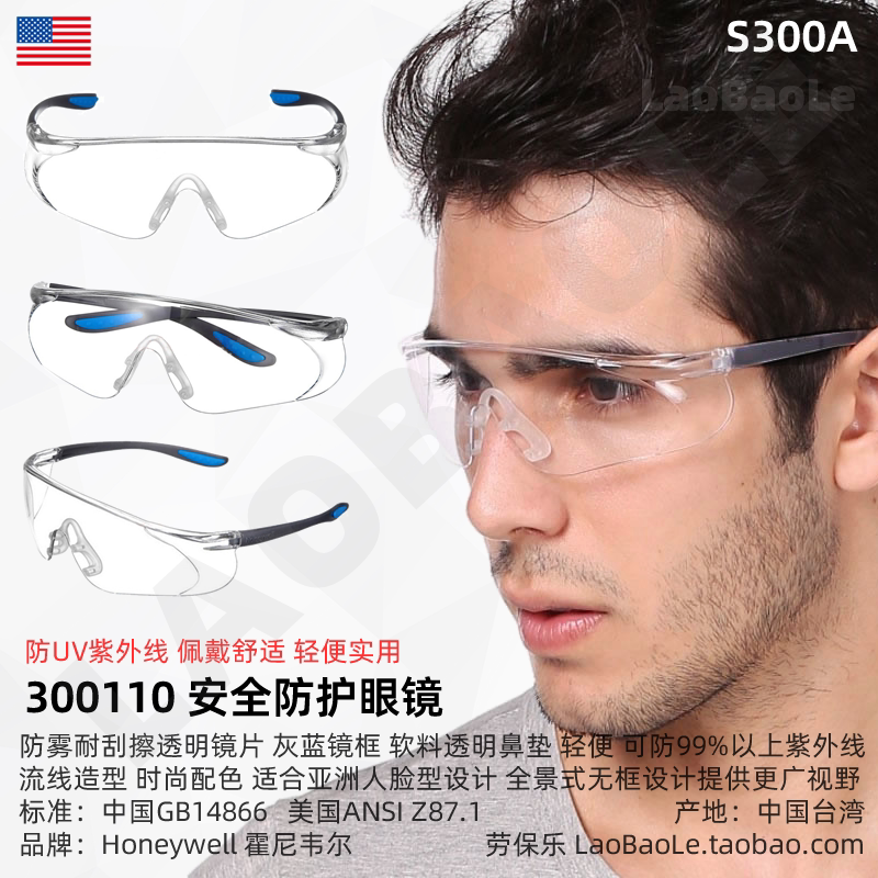 淘霍尼韦尔100001护目镜骑行防风透明挡风防尘沙尘劳保打磨访客眼镜
