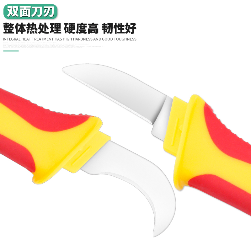 电工专用剥电线木柄电工刀,是电工行业不可或缺的专业工具。采用优质高碳钢锻造刀身,兼具直刃与弯刃设计,直刃适合精准切割,弯刃便于剥离电线外皮,操作灵活高效。刀锋锋利耐用,防锈防腐,确保长久使用。手柄选用天然实木材质,握感舒适,防滑耐磨,长时间作业不易疲劳。部分款式为折叠设计,便于携带与收纳,安全可靠。该电工刀集切割、剥皮、修剪于一体,广泛应用于电力安装、设备维修、家庭布线等场景,是专业电工信赖的得力助手,兼顾实用性与安全性,提升作业效率。