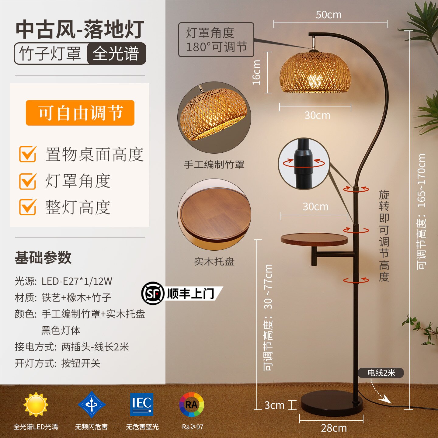 淘宝新款中古风落地灯置物一体高级感氛围钓鱼灯客厅沙发台灯卧室P701