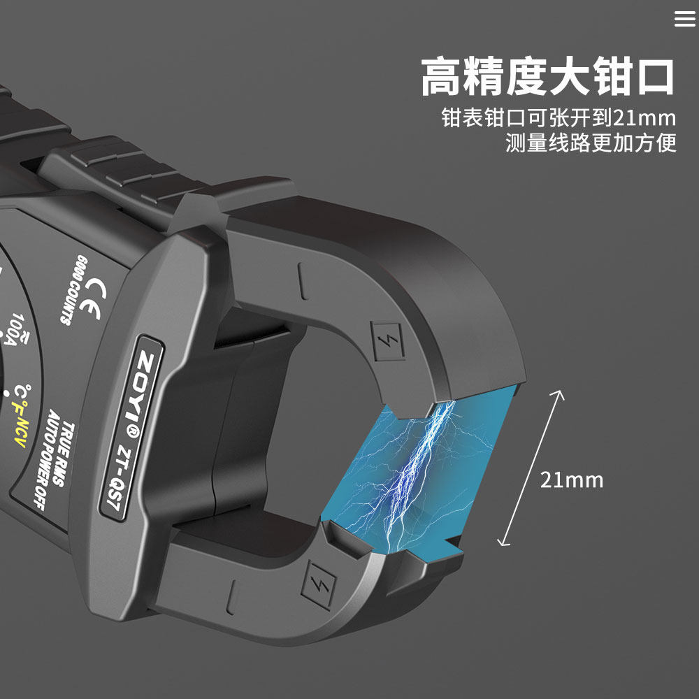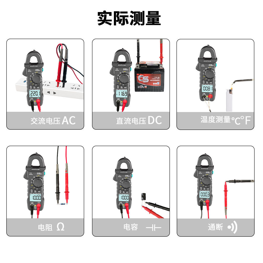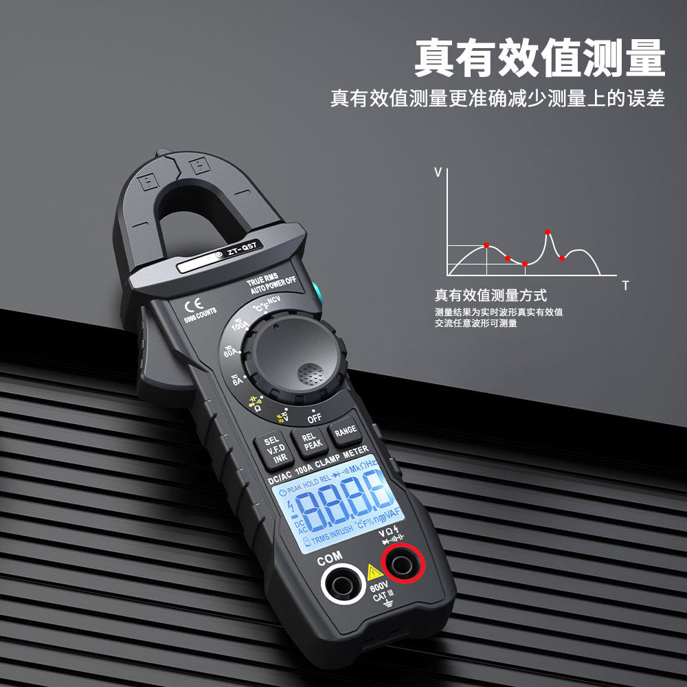 众仪交直流钳形万用表ZT-QS7是一款高精度、智能化的多功能检测仪表,专为汽车维修、电瓶车检测及家庭电路维护设计。采用先进钳形非接触测量技术,可安全便捷地测量交直流电流,无需断开电路。具备防烧保护功能,有效防止误操作损坏设备。支持电压、电阻、通断测试、电容测量等多种功能,适用于检测汽车电瓶漏电、线路故障等常见问题。高清背光显示屏,数据读取清晰直观,操作简便。体积小巧,携带方便,是电工、汽修技师及DIY爱好者的理想工具。ZT-QS7以高精度、高安全性和多功能集成,为用户提供可靠高效的电气检测解决方案。