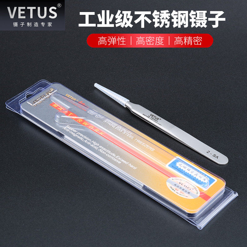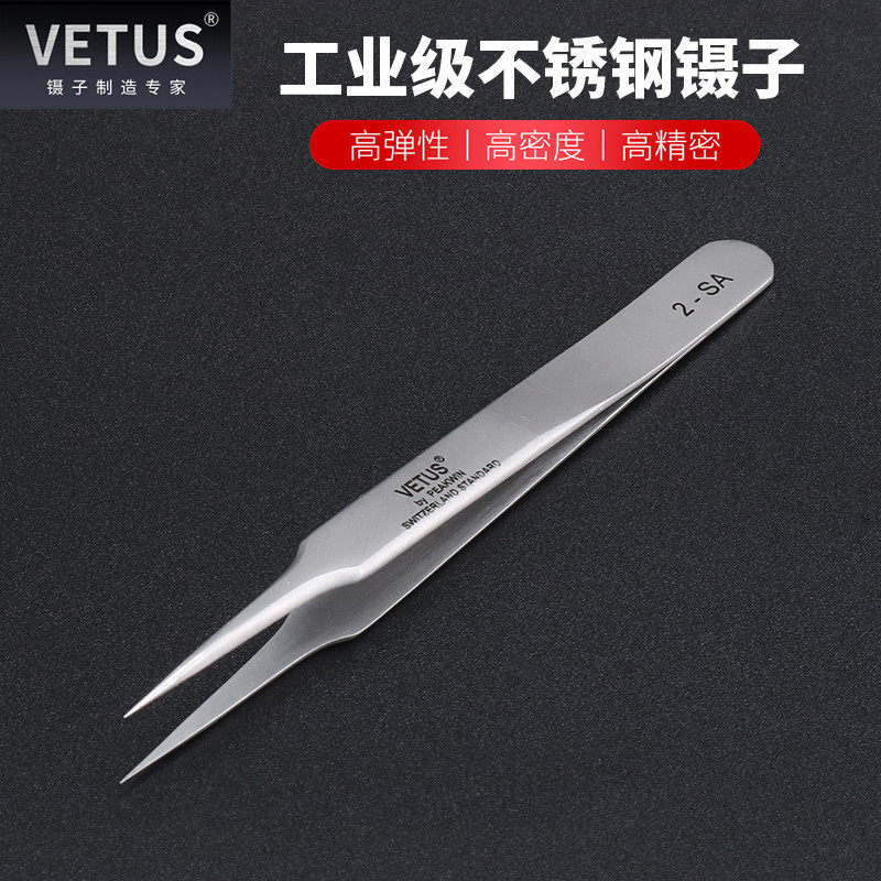 天猫VETUS镊子 精细高精密高弹性防磁耐酸不锈钢尖头镊子2-SA