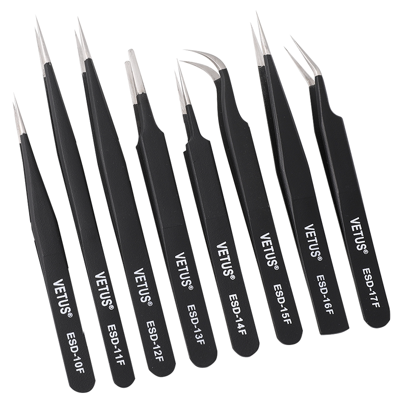 VETUS ESD-12F是一款专为精密电子作业设计的高品质镊子,采用高弹性不锈钢材质制造,兼具优异的防静电(ESD安全)与防磁性能,有效避免对敏感元器件造成损害。其尖头设计精细,夹持力稳定,适用于微小元件的精准操作。表面经特殊处理,具备出色的耐酸腐蚀能力,延长使用寿命。黑色涂层不仅美观,还能有效防反光,提升操作舒适度。广泛应用于半导体、微电子、精密仪器维修等领域,是工程师和技术人员值得信赖的专业工具,兼顾安全性、耐用性与操作精度。