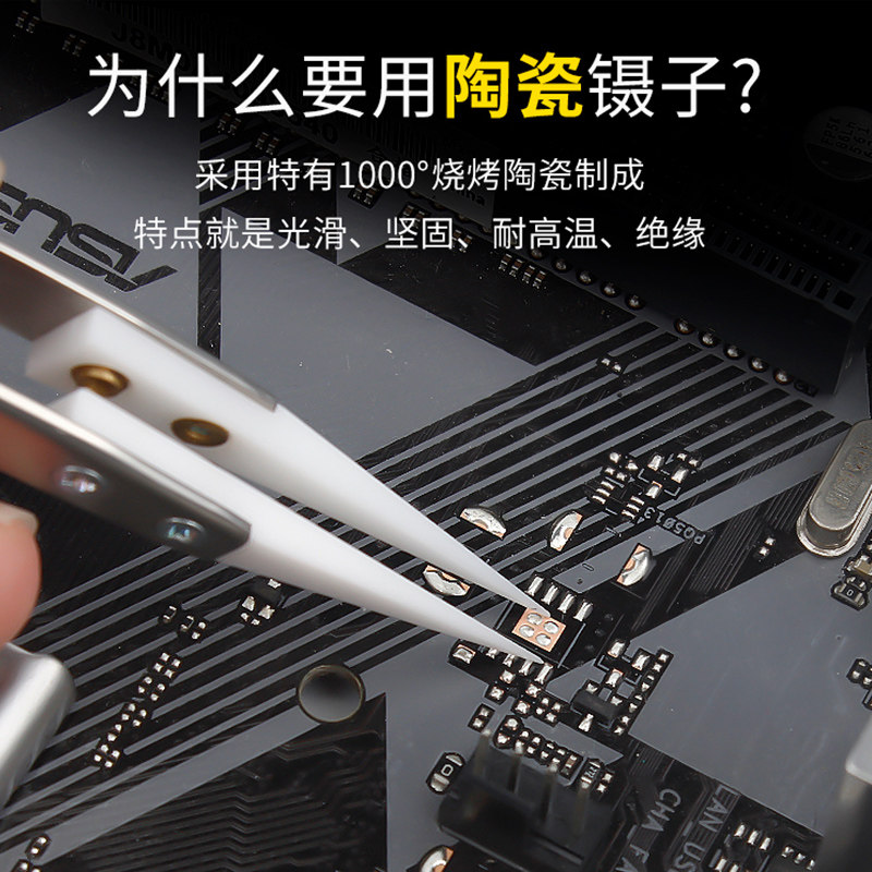 淘宝鹿仙子不锈钢飞线镊子手机维修可换头绝缘陶瓷指纹高精密尖头夹子
