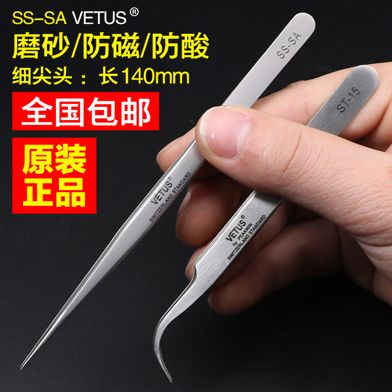 淘宝VETUS镊子高精密飞线不锈钢特硬细尖头夹防静电镊子维修工具