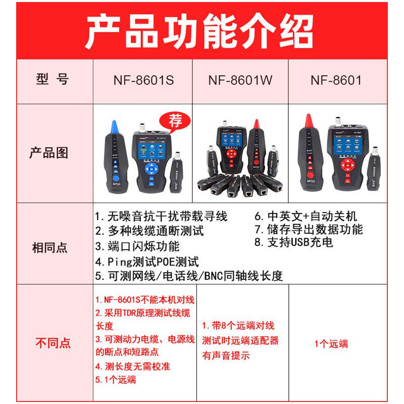 淘宝精明鼠NF-8601S寻线仪POE测线仪寻线器多功能网络测试仪断点8601W