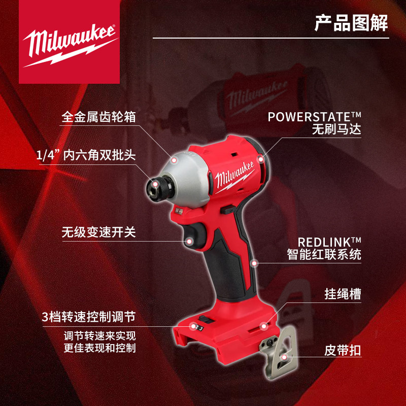 淘宝milwaukee美沃奇米沃奇冲击起子机无刷电动螺丝刀18V锂电M18BLIDR