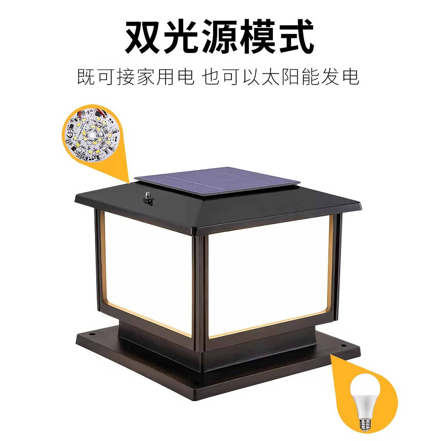 天猫暖朵太阳能柱头灯别墅围墙门柱照明农村室外铝型材景观户外庭院灯