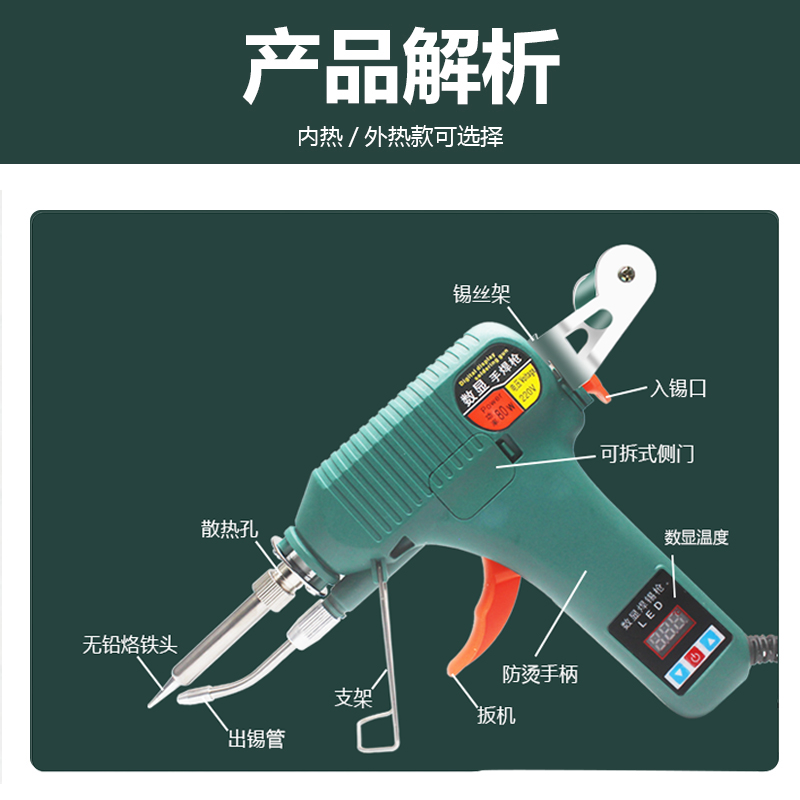 这款自动送焊锡枪手动出锡电烙铁套装,配备80W/120W大功率加热元件,升温迅速、热效率高,适用于精密电子维修、电路板焊接及工业级作业。采用数显调温技术,温度精准可控(通常200℃–480℃可调),满足不同焊点需求。独特的自动送锡与手动出锡双模式设计,提升操作效率,减少虚焊、冷焊问题。套装包含多种烙铁头、镊子、吸锡器等实用工具,兼容性强,适合维修手机、家电、数码产品等。手柄符合人体工学,长时间使用不易疲劳,安全可靠,是电子爱好者和专业维修人员的理想选择。