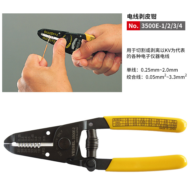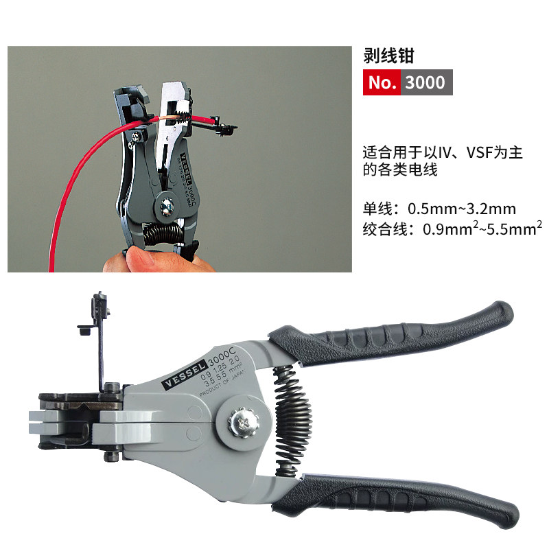 淘宝日本VESSEL威威剥线钳进口多功能电工剥皮钳3000B 3000C 3500E-1
