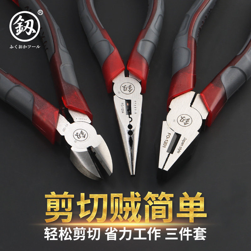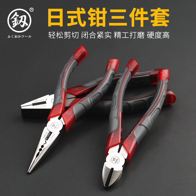 日本福冈8寸老虎钳工业级多功能钢丝钳尖嘴钳电工维修工具