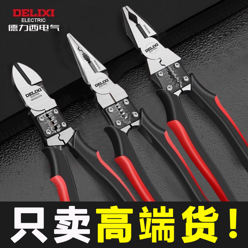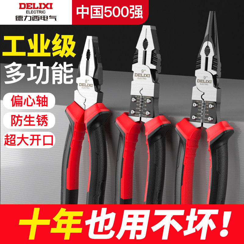 天猫德力西电气老虎钳子多功能万用钢丝尖嘴钳高硬度电工专用钳子套装