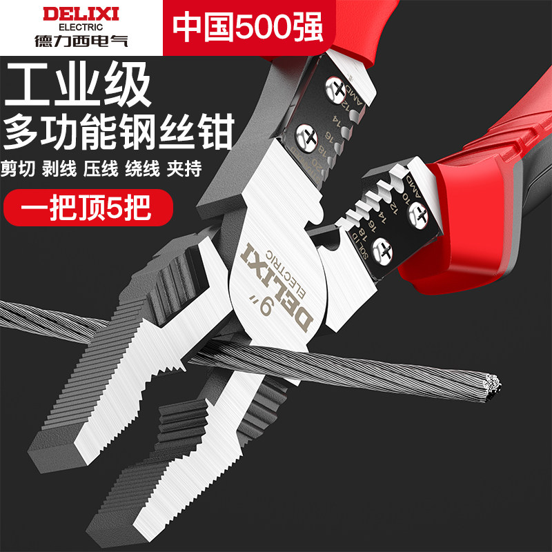 德力西一拖五多功能钳子钢丝钳老虎钳剥线钳电工专用剪线钳压线钳