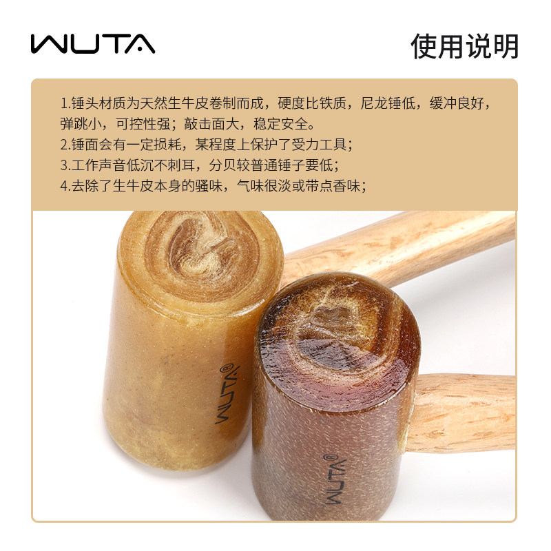 这款无它生牛皮实木双面安装锤,专为手工皮具爱好者设计,采用优质实木锤身搭配天然生牛皮锤头,双面可用,经久耐用。锤面经精细打磨,圆润光滑,敲打时不易损伤工具或皮料,特别适合配合菱斩、冲子等皮具工具使用。其圆头设计兼顾力度与精准,确保打孔整齐、缝线均匀。整体结构稳固,握感舒适,重量适中,长时间使用不易疲劳。无论是初学者还是资深匠人,这款老式手工皮锤都是DIY皮具的理想助手,融合传统工艺与现代实用性,让每一针每一线都饱含匠心。