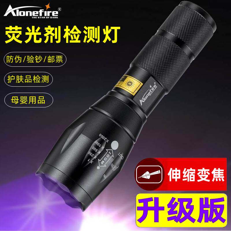 淘宝大功率调焦验钞灯uv紫外线检测荧紫光钱币鉴定板材防伪手电筒