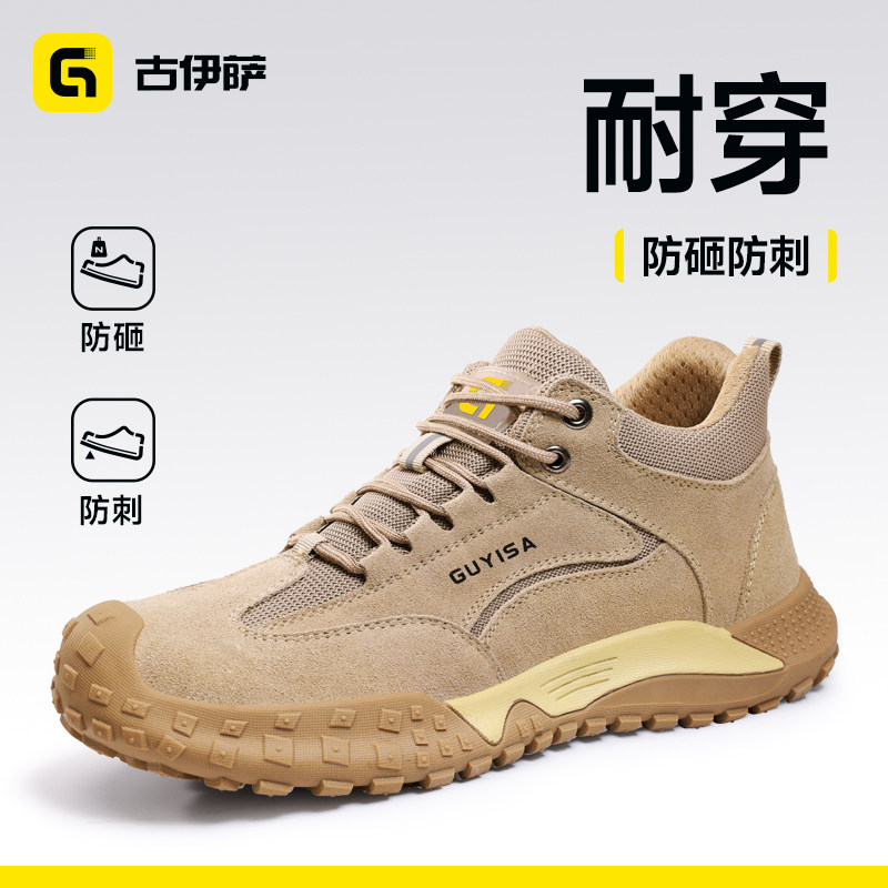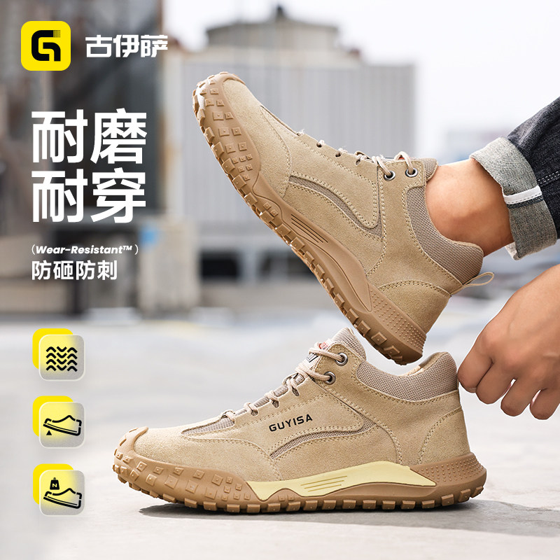 天猫古伊萨劳保鞋男款透气防砸防刺穿工地绝缘轻便老保钢板牛皮钢头鞋