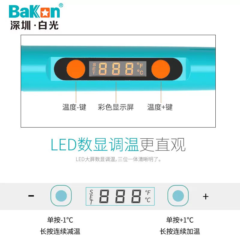 白光BK606直插式数显调温恒温电烙铁套装是一款专为电子维修、DIY制作及学生实训设计的高效工具。配备90W大功率加热元件,升温迅速,热恢复性强,适合焊接大焊点及多引脚元件。采用数显调温技术,温度范围宽广(约200℃–480℃),精准可控,确保不同元器件的安全焊接。恒温功能有效防止过热损坏,提升焊接质量与效率。套装包含607型烙铁头及多种配件,兼容性强,操作便捷。直插式供电设计稳定可靠,手柄符合人体工学,长时间使用不易疲劳。适用于电子爱好者、维修技术人员及电子类专业学生,是教学与实践的理想选择。
