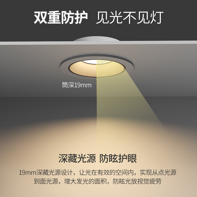 天lipro LED筒灯嵌入式防眩射灯天花灯客厅吊顶护眼玄关过道射灯A系