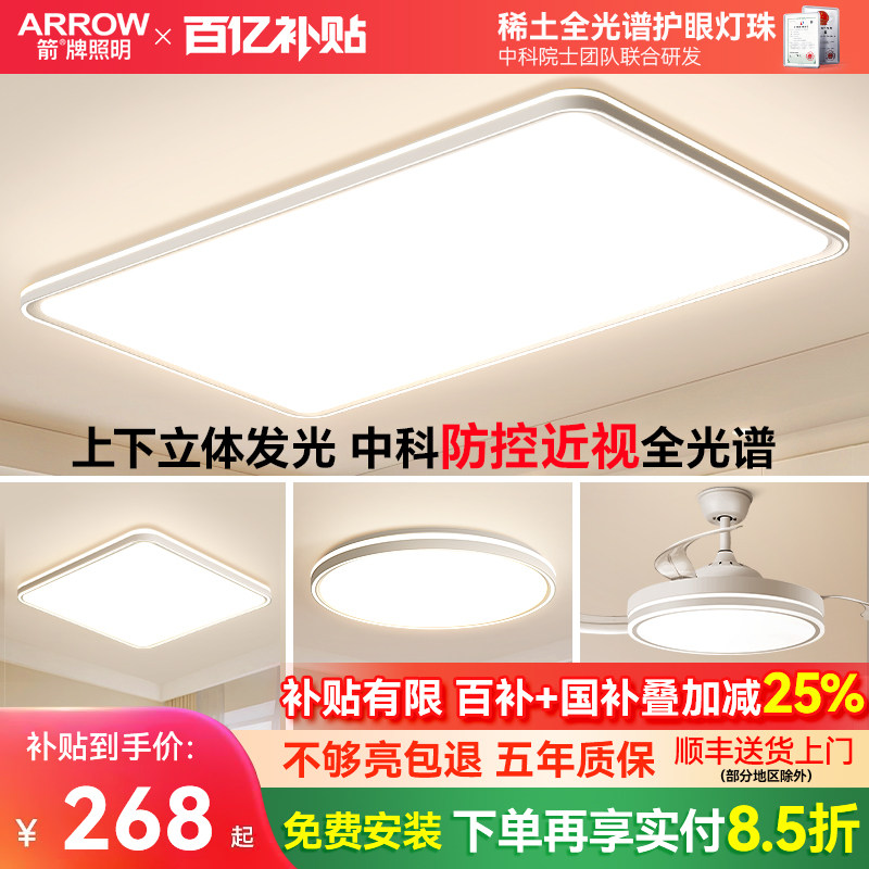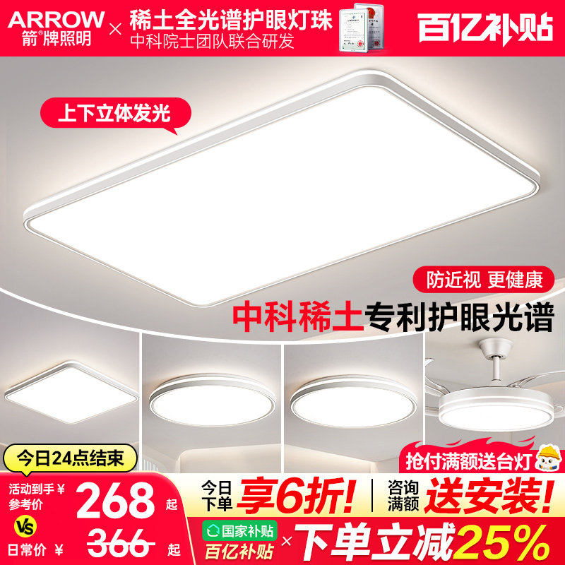 箭牌眼卫士稀土控轴防控近视护眼吸顶灯客厅灯现代简约高亮无缝隙