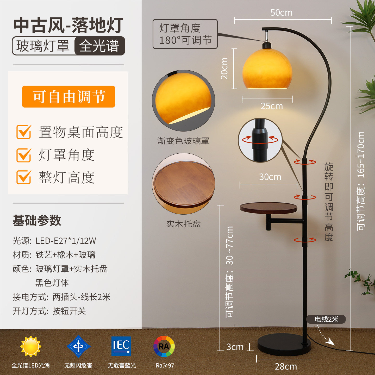 淘宝新款中古风落地灯置物一体高级感氛围钓鱼灯客厅沙发台灯卧室P701