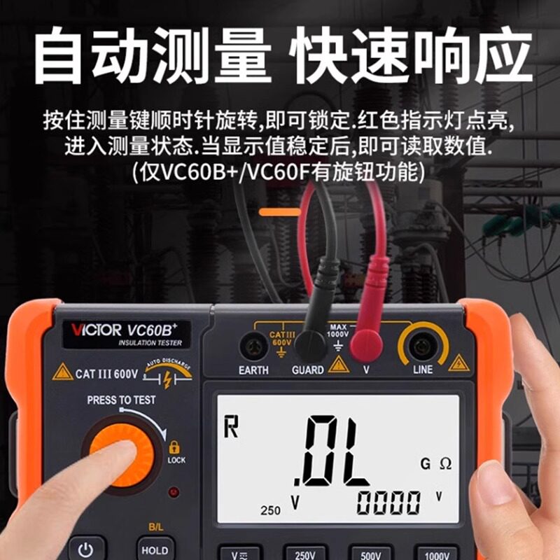 胜利绝缘电阻测试仪数字式兆欧表1000V智能电工绝缘表摇表VC60B+