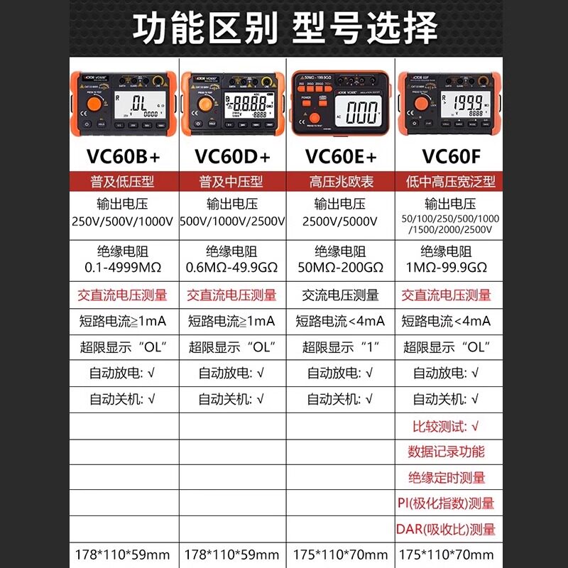 天猫胜利正品数字绝缘电阻测试仪VC60B+兆欧表电工摇表500V/1000V2500
