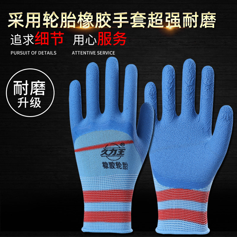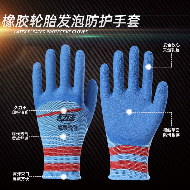 淘宝久力王劳保手套耐磨防滑橡胶带胶塑胶胶皮干活工作工地男防护手套