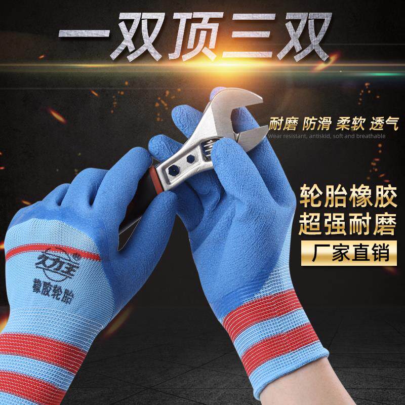 淘手套劳保耐磨工地干活用的工作劳动防滑男女透气橡胶带胶劳保手套