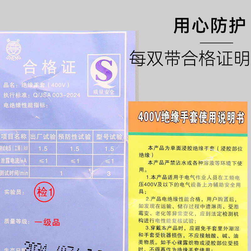 胜丽高压低压电工防电400V双面绝缘手套防水防滑耐磨专用劳保手套