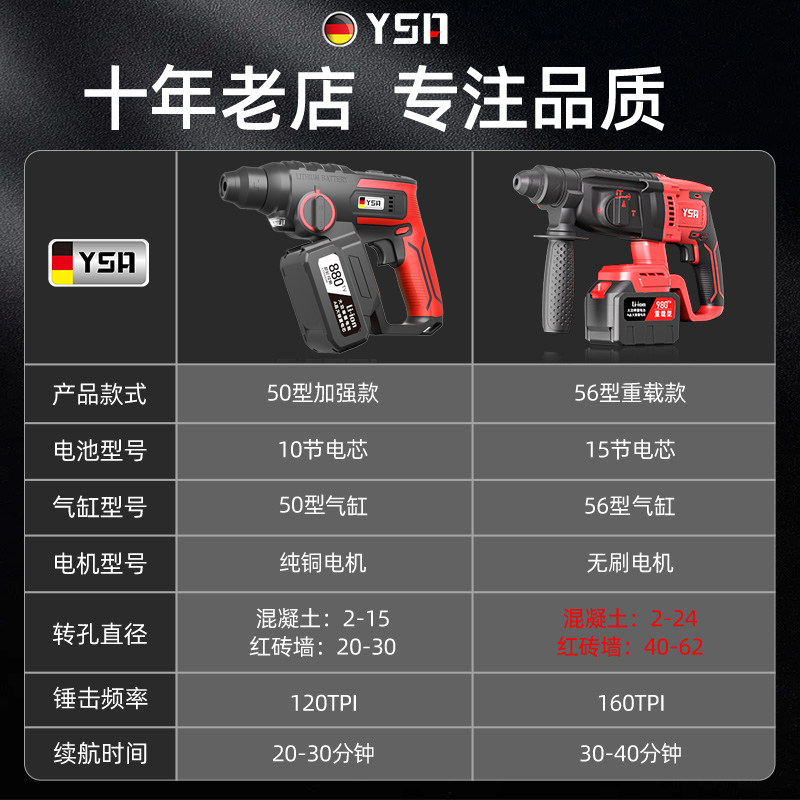 天猫大功率无刷充电电锤混凝土多功能锂电冲击钻电钻重型电镐三用